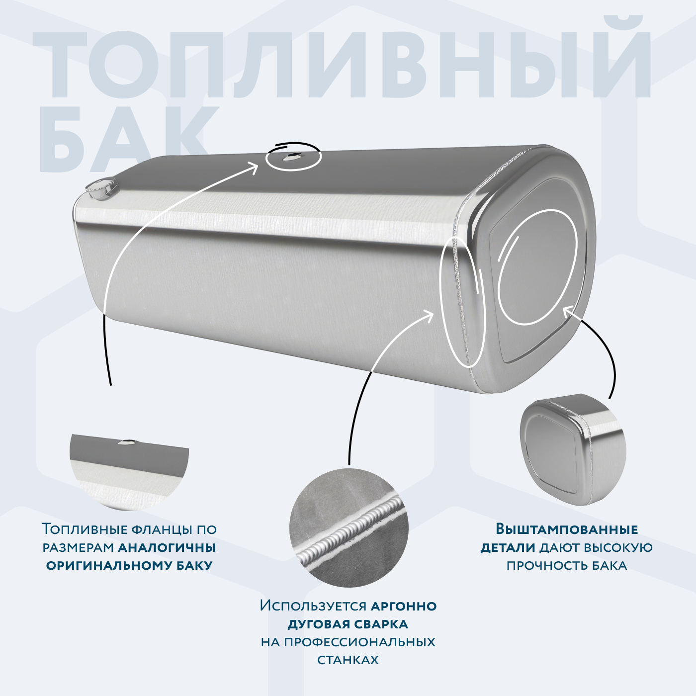 Алюминиевый бак не подвержен коррозии, что делает его более долговечным, а так же сбережет вашу топливную систему. Бак из алюминия в два раза легче стального бака, хотя он и изготовлен из листа увеличенной толщины в 2,5 мм. В конструкции предусмотрены цельные перегородки, которые проварены по периметру. Баки из алюминия так же оснащены заливной горловиной с самозапираемым непроливаемым клапаном (который становится барьером для разлива топлива, а так же становится защитой от попадания мусора в бак при открытой крышке) . Кроме того, однозначно что алюминиевый бак выглядит намного привлекательнее и дороже - где бак в том числе становиться и элементом тюнинга автомобиля. На алюминиеввые баки действует увеличенная гарантия - 36 месяцев.
